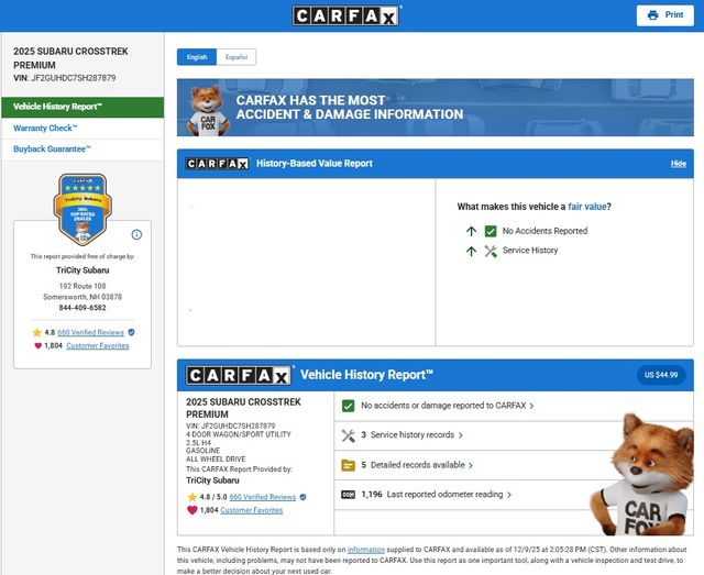 2025 Subaru Crosstrek Premium Magnetite Gray Metallic 10-Way Power Driver's Seat, 6 Speakers, All-Weather Package, Blind Spot Detection (BSD), BSD/RCTA & All Wthr Pkg & Pwr Dr. Seat & Pwr Moonrf, Dual-Mode Heated Front Seats, Emergency communication system, Exterior Parking Camera Rear, Front dual zone A/C, Front fog lights, Fully automatic headlights, Heated Power Exterior Mirrors, Power door mirrors, Power Moonroof, Radio: Subaru 11.6" Multimedia Plus System, Rear Cross-Traffic Alert (RCTA) System, Remote keyless entry, Speed control, Split folding rear seat, Steering wheel mounted audio controls, Telescoping steering wheel, Tilt steering wheel, Turn signal indicator mirrors, Wheels: 17" x 7.0" J Machine Finish Aluminum-Alloy, Windshield De-Icer Wipers. Clean CARFAX. Priced below KBB Fair Purchase Price!