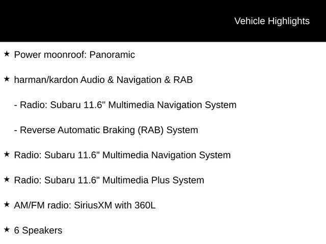- Radio: Subaru 11.6" Multimedia Navigation System