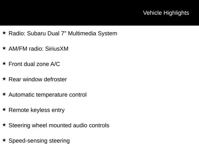 This Impreza is not only practical but also packed with a wealth of features that will enhance your driving experience. The Subaru Dual 7" Multimedia System provides seamless connectivity, allowing you to stay entertained and informed on the go. The automatic temperature control and front dual-zone air conditioning ensure a comfortable cabin, while the remote keyless entry and speed-sensing steering add to the convenience.