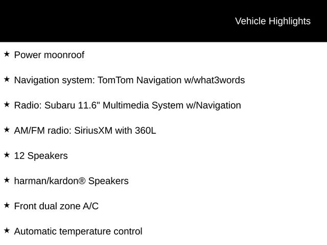 ⢠Radio: Subaru 11.6" Multimedia System w/Navigation