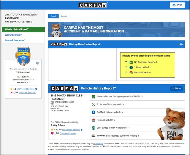 Whether you're shuttling the kids to their activities, embarking on a family road trip, or simply running everyday errands, this 2013 Toyota Sienna XLE is the perfect companion. With its exceptional versatility, impressive features, and renowned Toyota reliability, this Sienna is the ideal choice for discerning families seeking the ultimate in practicality and comfort.